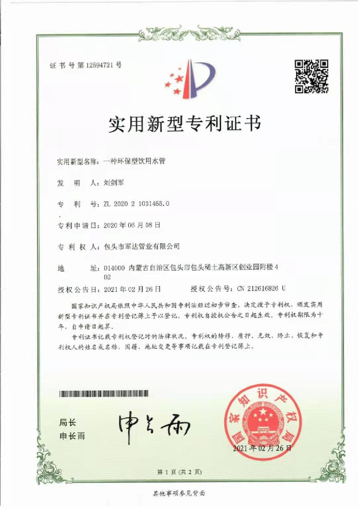 涉及饮用水证书